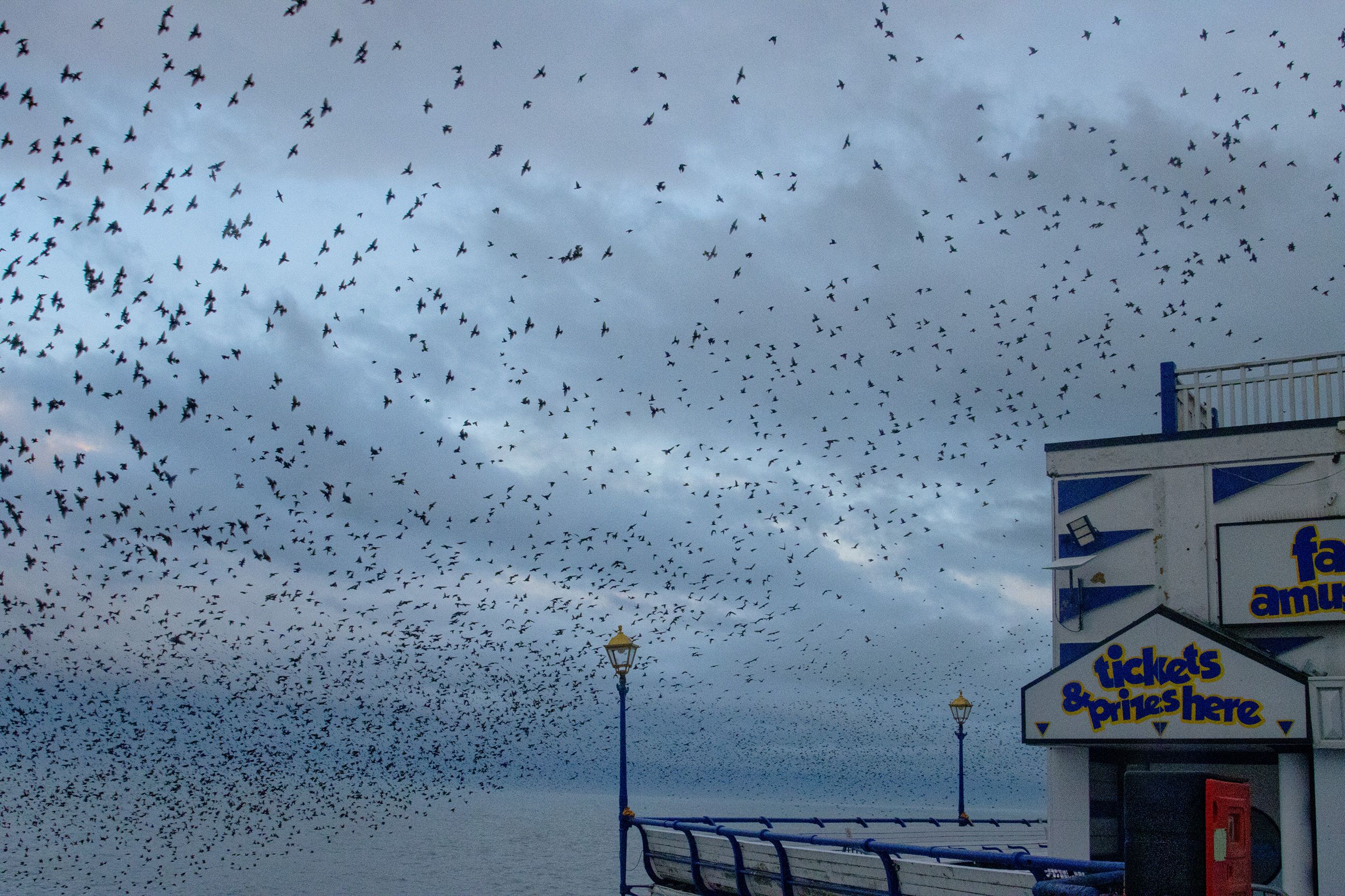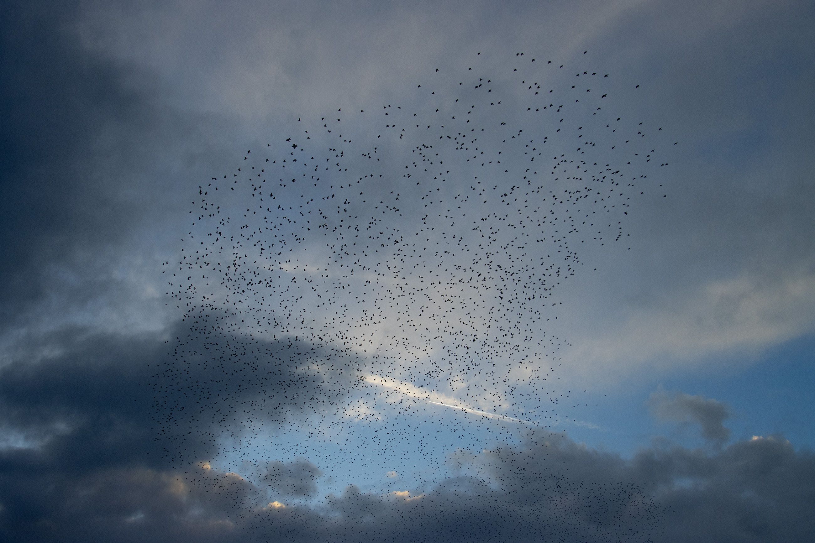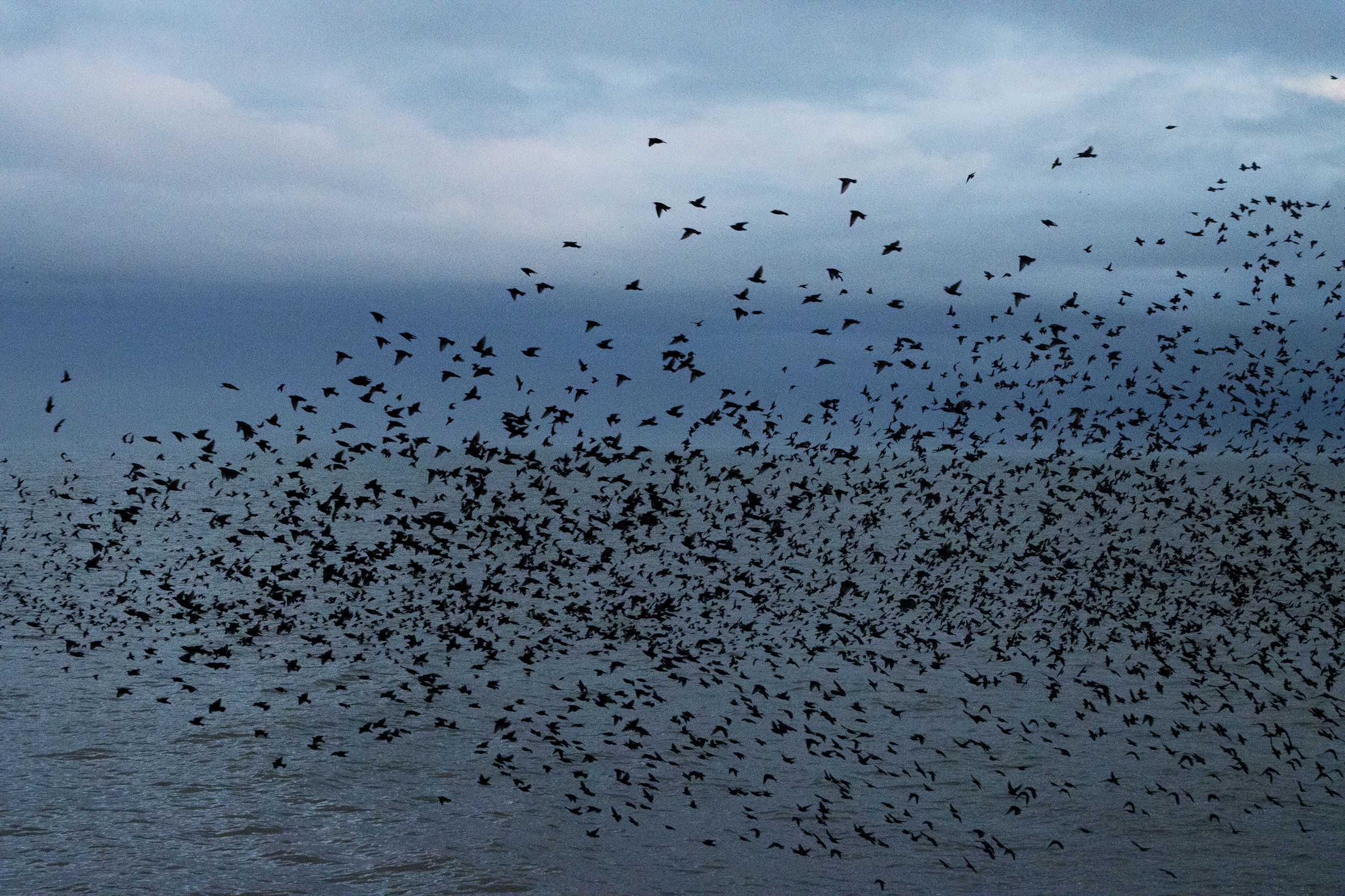 Starlings are highly social songbirds best known for forming huge, fast-moving flocks, especially in winter. A murmuration—the swirling, shape-shifting aerial display made by thousands of birds flying closely together—seems to serve several purposes: it can reduce an individual bird’s risk of being caught by a predator (because predators are confused by the moving mass and have trouble targeting one bird), it may help birds share information about good roosting sites, and it can also improve safety and efficiency as the flock settles to roost for the night.