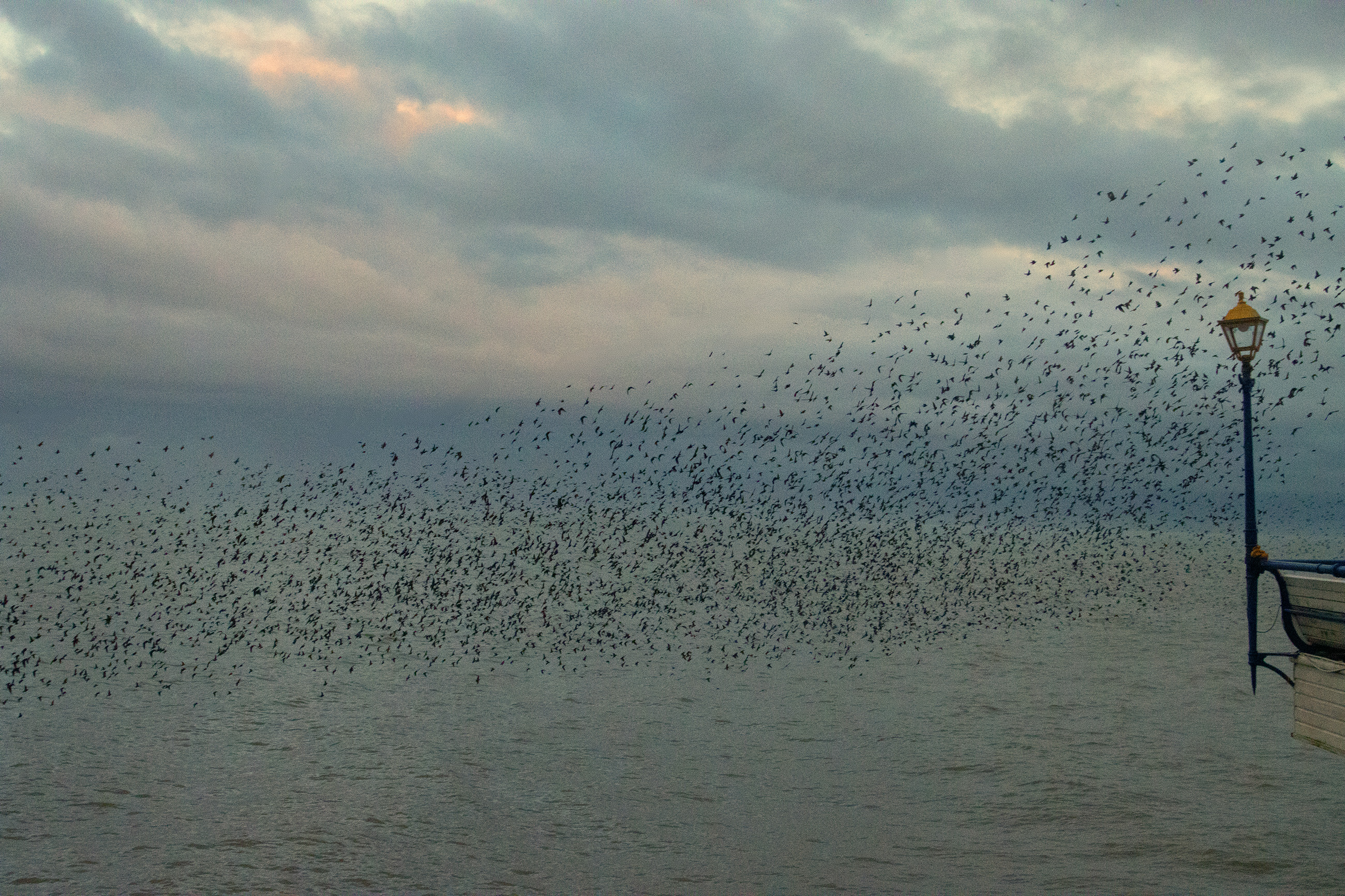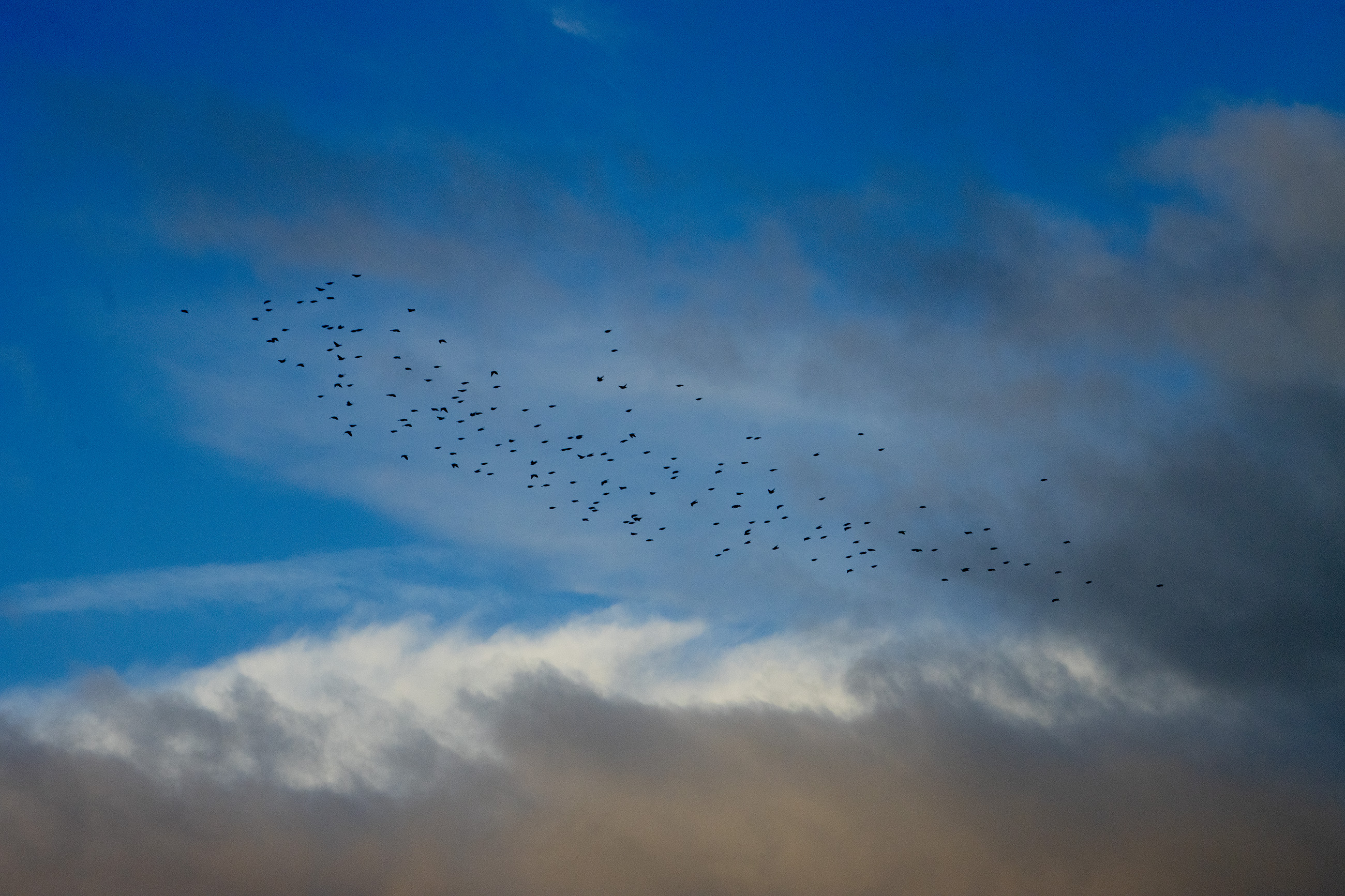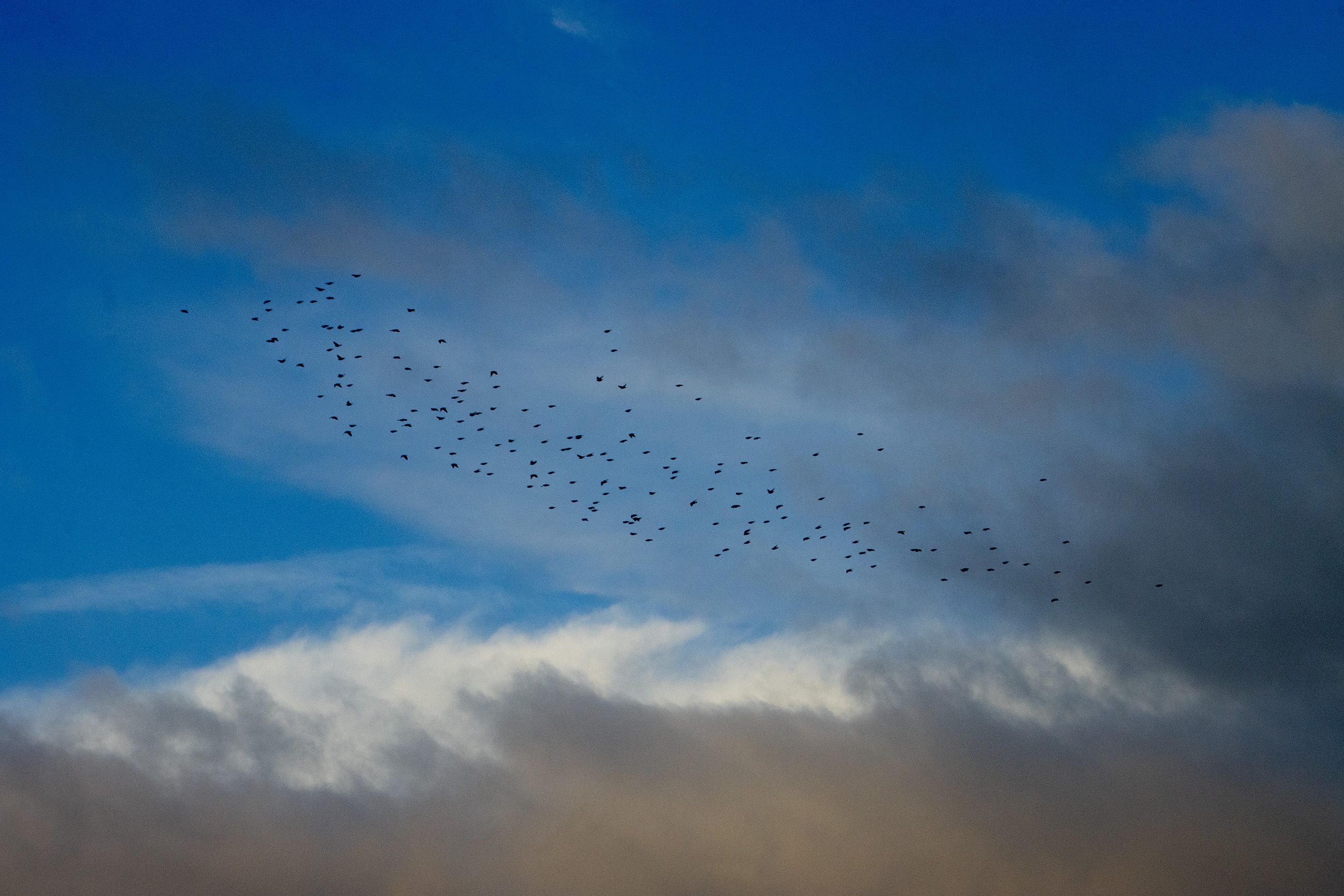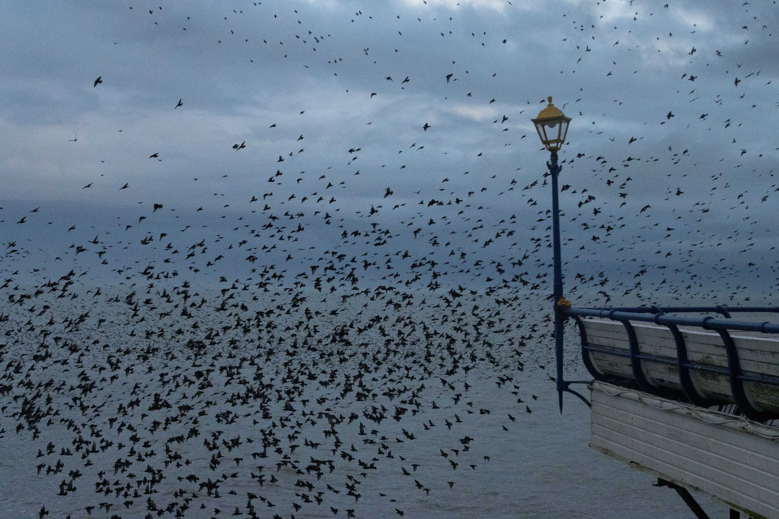 Starlings are highly social songbirds best known for forming huge, fast-moving flocks, especially in winter. A murmuration—the swirling, shape-shifting aerial display made by thousands of birds flying closely together—seems to serve several purposes: it can reduce an individual bird’s risk of being caught by a predator (because predators are confused by the moving mass and have trouble targeting one bird), it may help birds share information about good roosting sites, and it can also improve safety and efficiency as the flock settles to roost for the night.