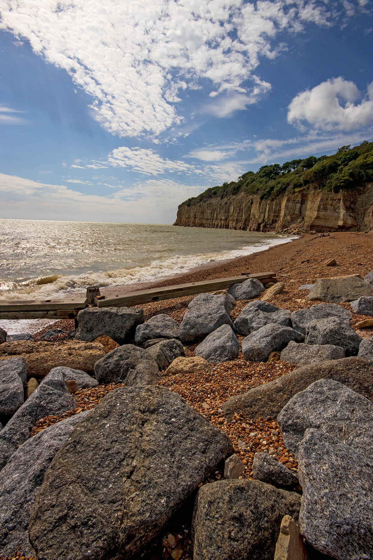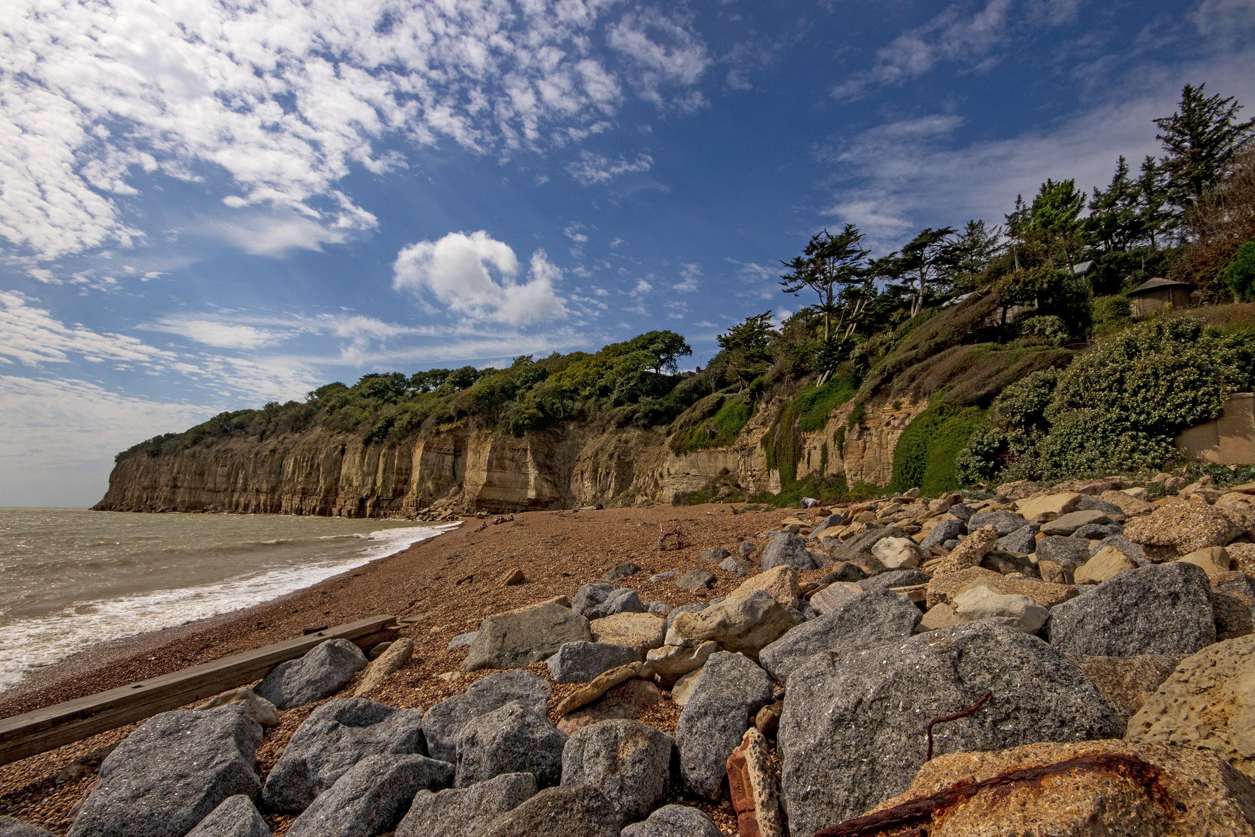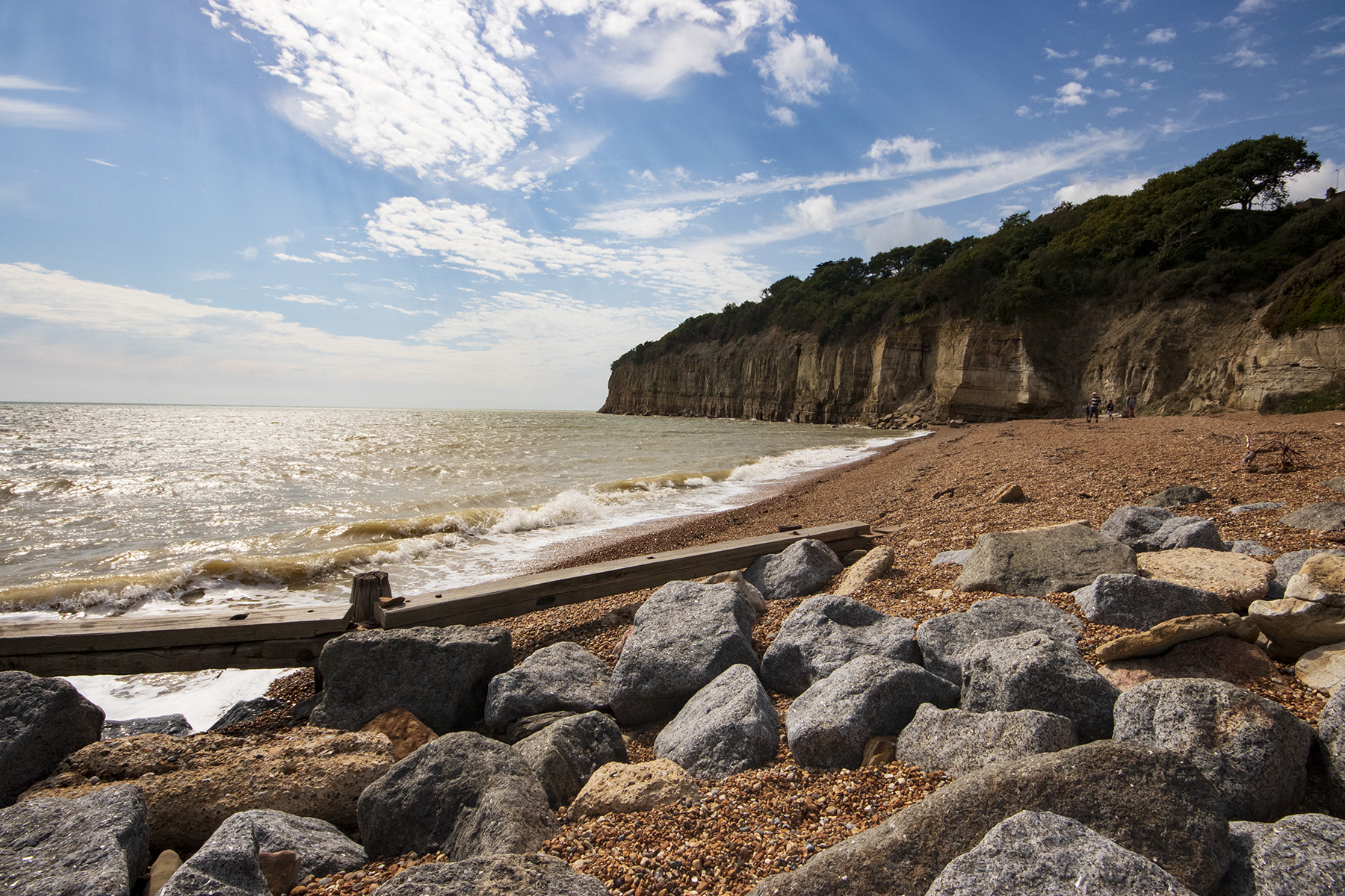 The beach itself is mostly shingle, held in place by wooden groynes, but at low tide, it reveals a flat expanse of sand and something far more ancient: the fossilised remains of a prehistoric forest, with tree stumps dating back over 6,000 years—remnants from a time when sea levels were much lower.