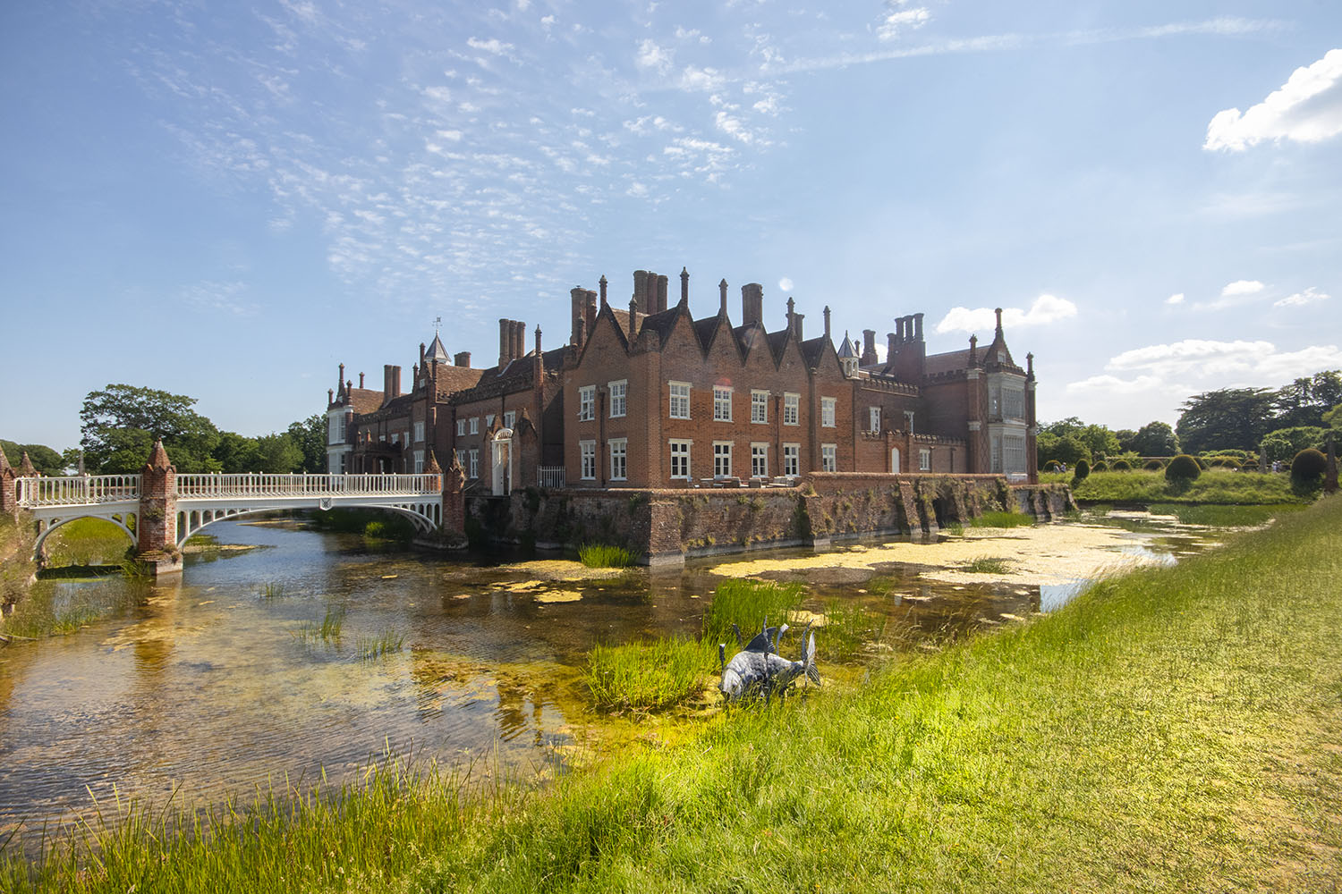 Helmingham Hall is a striking moated manor house nestled in the Suffolk countryside, near Stowmarket. Built around 1510 by John Tollemache, it has remained in the Tollemache family ever since—a lineage stretching back over 500 years.