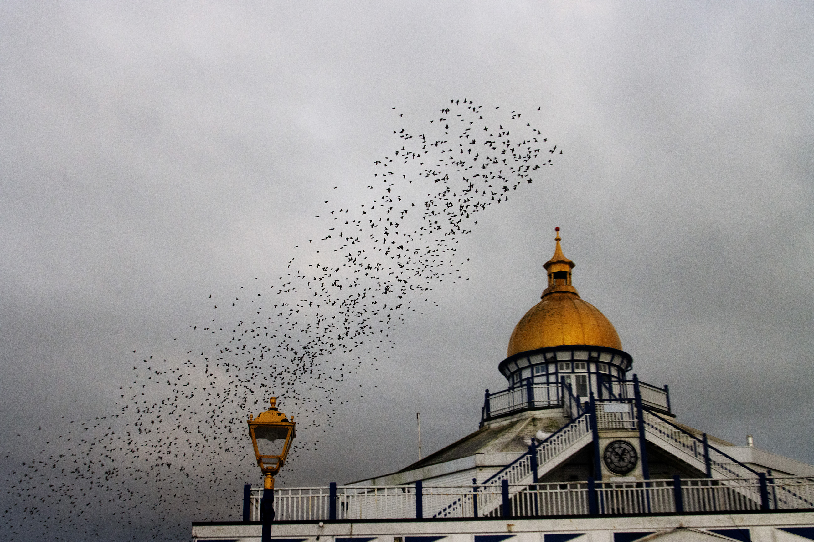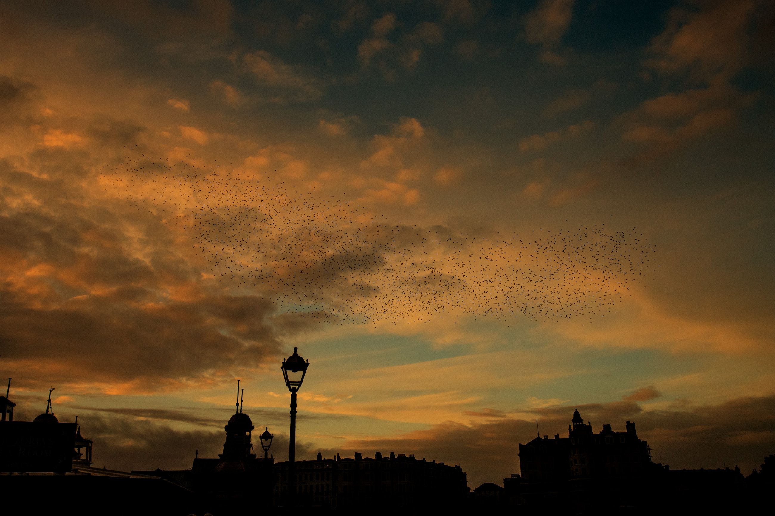 Starlings are highly social songbirds best known for forming huge, fast-moving flocks, especially in winter. A murmuration—the swirling, shape-shifting aerial display made by thousands of birds flying closely together—seems to serve several purposes: it can reduce an individual bird’s risk of being caught by a predator (because predators are confused by the moving mass and have trouble targeting one bird), it may help birds share information about good roosting sites, and it can also improve safety and efficiency as the flock settles to roost for the night.